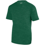 Augusta Adult Shadow Tonal Training T-Shirt. 100% polyester heathered wicking knit. Wicks moisture away from the body. Pad print label. Self-fabric crew neck collar. Set-in sleeves. Double-needle hemmed bottom and sleeve.