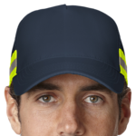 Adams 100% polyester. Five-panel, structured mid-profile. High-visibility color crown with matching color mesh side and back panels. High visibility contrast color taping with reflective grey center stripe on bottom side panels. Pre-curved visor with low glare grey twill under visor and sweatband. Matching color plastic snap closure. Meets ANSI Class 2 standards.